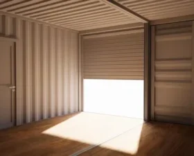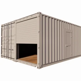 Armazém de 28 m² em contentores de 20 pés com cortina metálica e porta de serviço